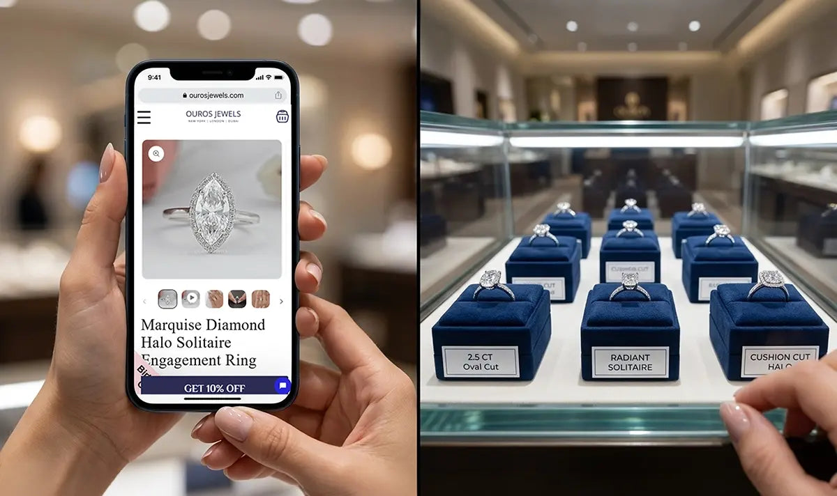 Both outcomes were avoidable. The choice between buying an engagement ring online or in-store isn’t about which channel is inherently better; it’s about understanding what each one does well, where each one creates risk, and how to use them together strategically.
