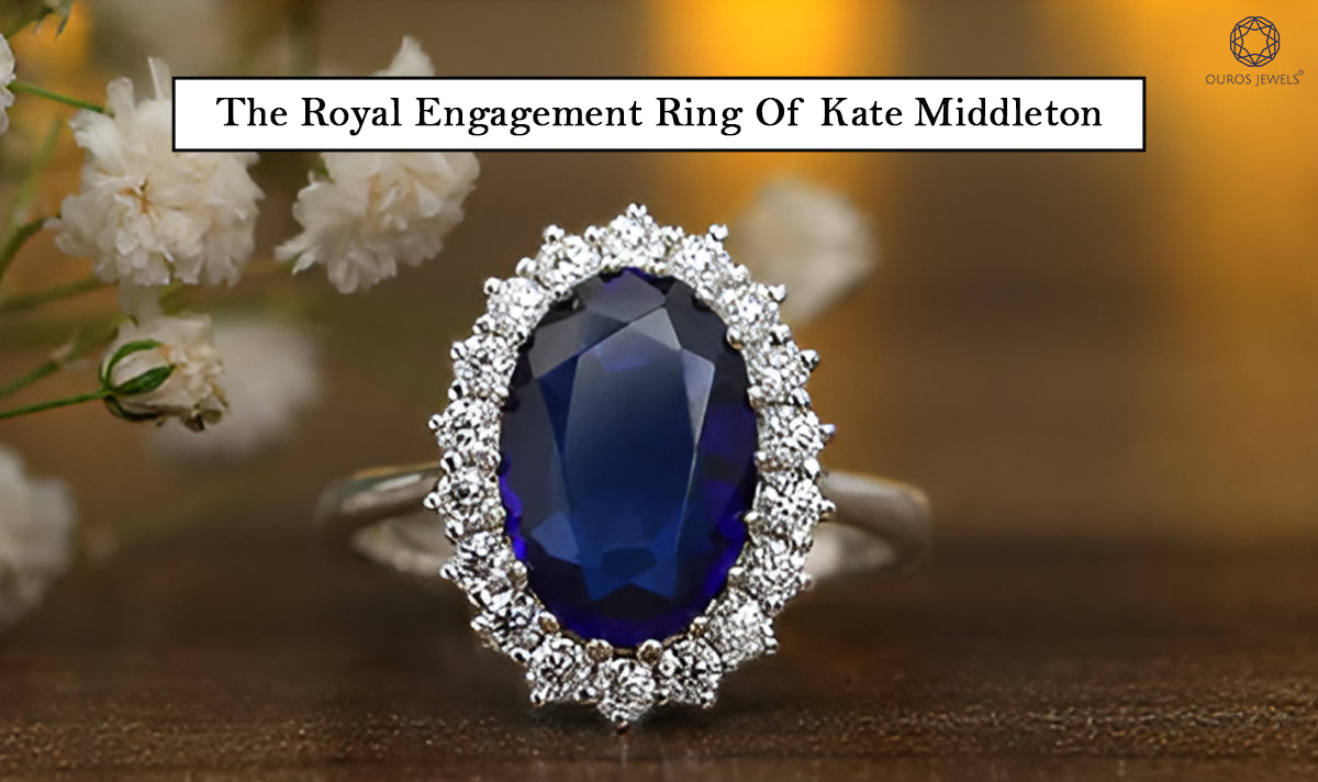 In Kate Middletons Ring wird ein 12 Karat blauer ovaler Saphir als Geburtsstein als Mittelstein verwendet. Das bedeutet, dass Kate Middleton einen Saphir in ihrem Ring trug. Während andere Akzentdiamanten aus runden Diamanten im Brillantschliff um die Mitte des blauen Saphirs angebracht sind. 14 runde Akzentdiamanten befinden sich im Ring der Herzogin von Wales, Kate Middleton, die im Uhrzeigersinn angeordnet sind.