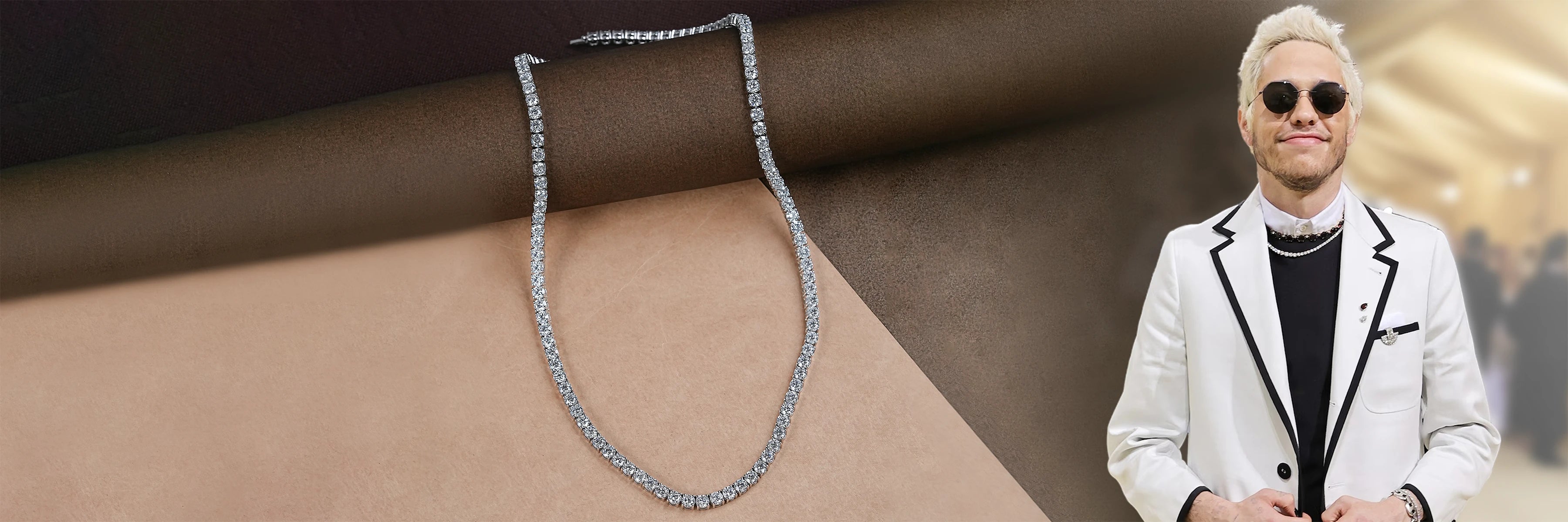 At the 2021 Met Gala, Pete Davidson wore a standout piece of jewelry: a large, silver cross necklace that complemented his overall look. The necklace, which added a touch of boldness to his outfit, contributed to the edgy and somewhat rebellious vibe he was going for. It was a simple yet striking accessory that added to his punk-inspired style while maintaining the understated yet distinctive look that has become part of Davidson's fashion identity.