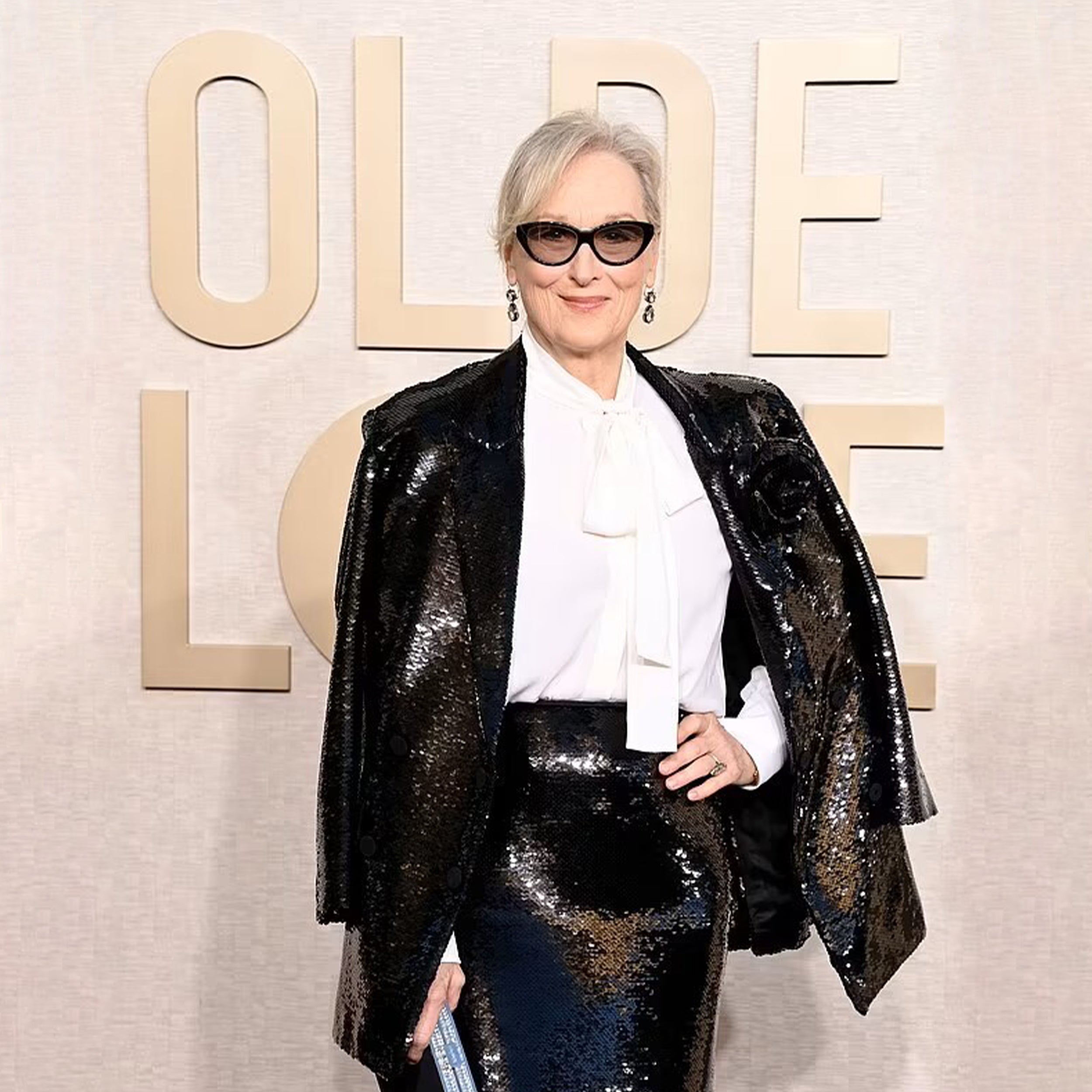For the occasion, Streep donned a custom Valentino creation designed by Pierpaolo Piccioli, which masterfully blended the refined elegance of tuxedo-inspired tailoring with the allure of sequined glamour. The ensemble featured a striking sequined jacket paired with a sleek skirt, creating a silhouette that was both bold and feminine. Her choice of Fred Leighton jewels complemented the outfit beautifully, adding a touch of vintage charm to her contemporary look. Streep's ensemble and accessories worked together seamlessly, cementing her status as a style icon and a true standout of the evening.