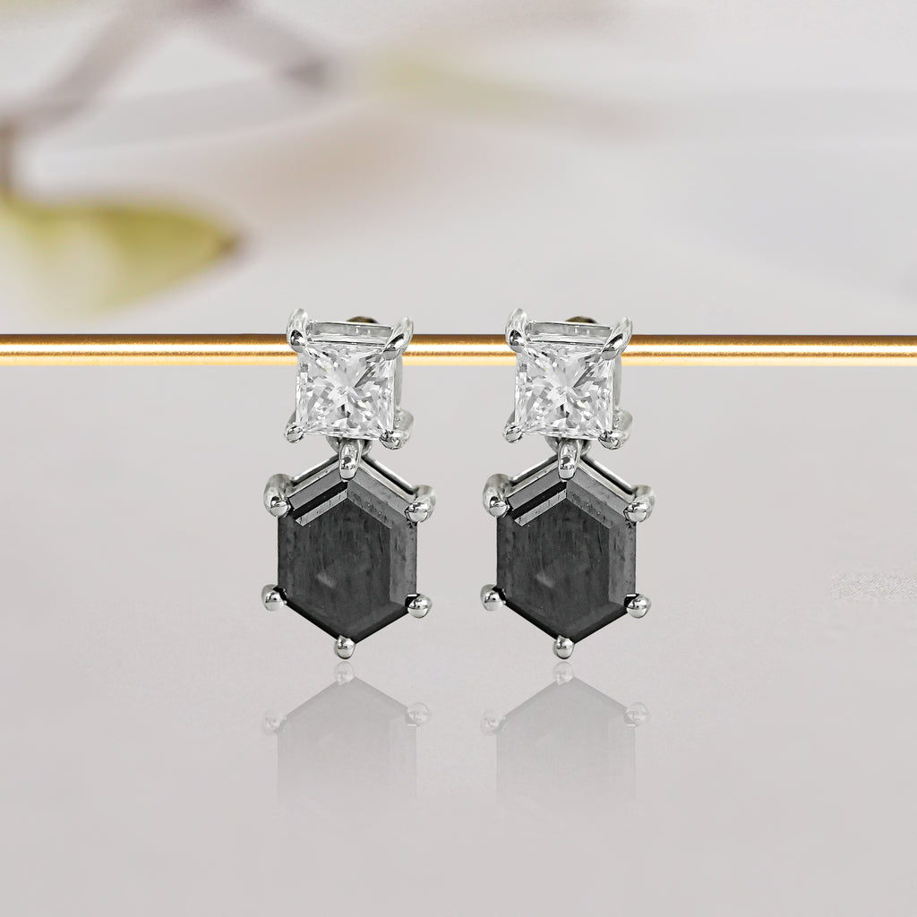 Discover the perfect balance of bold sophistication and classic style with this stunning black diamond jewelry set. Featuring hexagon-shaped black diamonds paired with radiant white stones, this set exudes modern elegance.