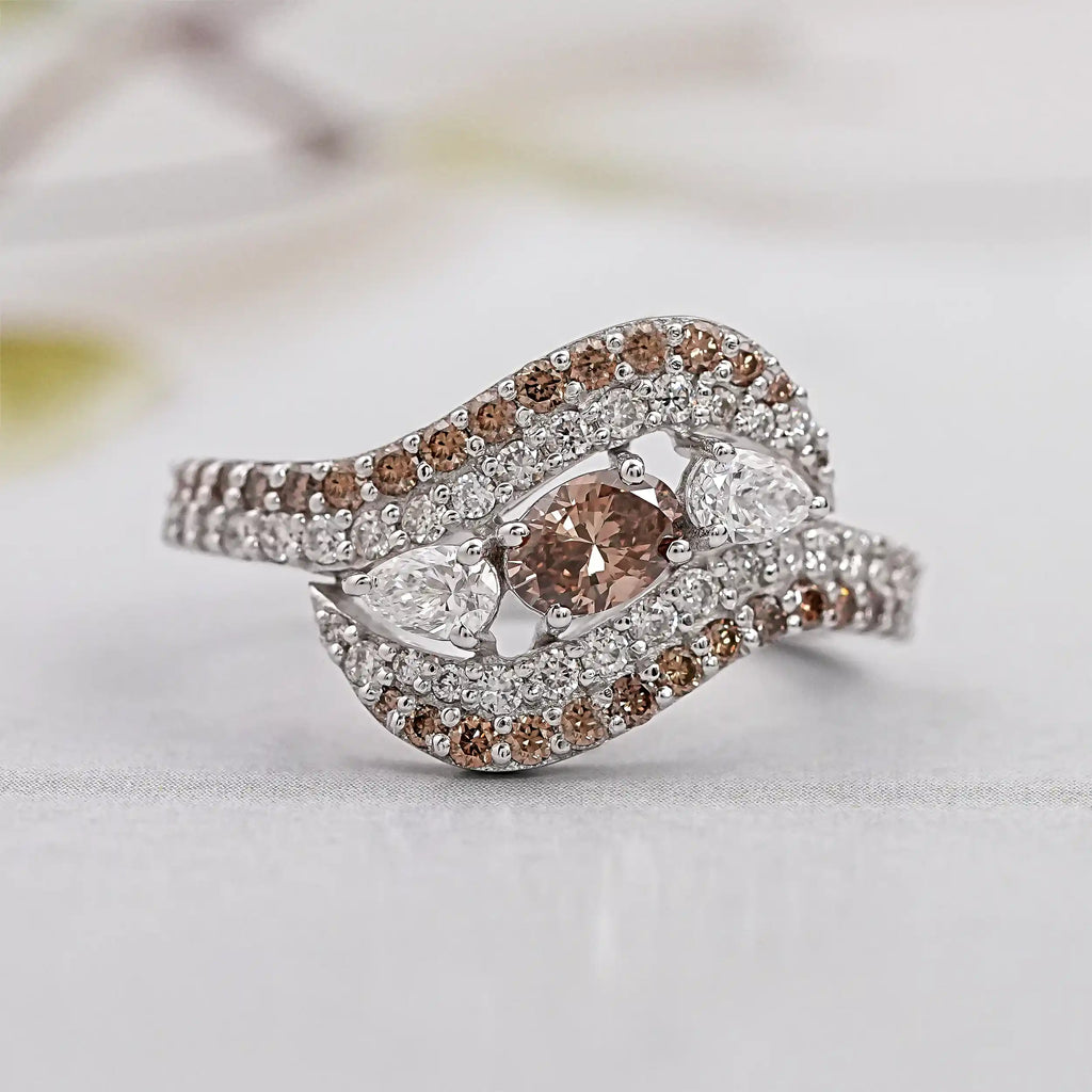 Brown diamonds with warmer, reddish tones suit warmer skin tones, while cooler brown shades complement cooler skin.