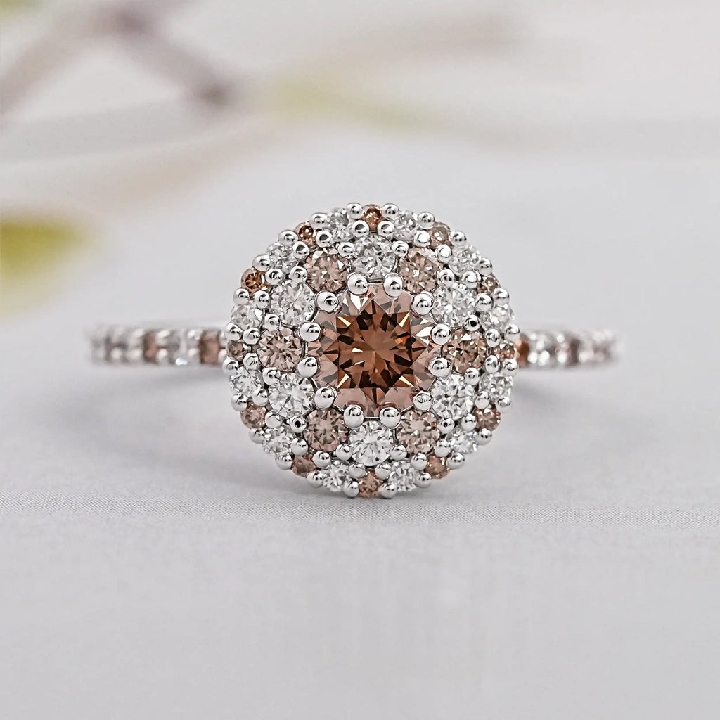 Brown diamonds usually have a richer, deeper hue, while champagne diamonds tend to be lighter with a more subtle golden tint.