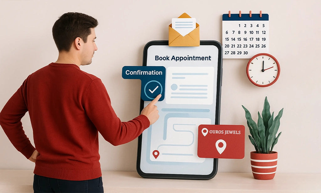 Book a virtual appointment with Ouros Jewels and connect with our jewelry experts from the comfort of your home. Explore our exquisite collection, get personalized guidance, and find the perfect piece with ease.